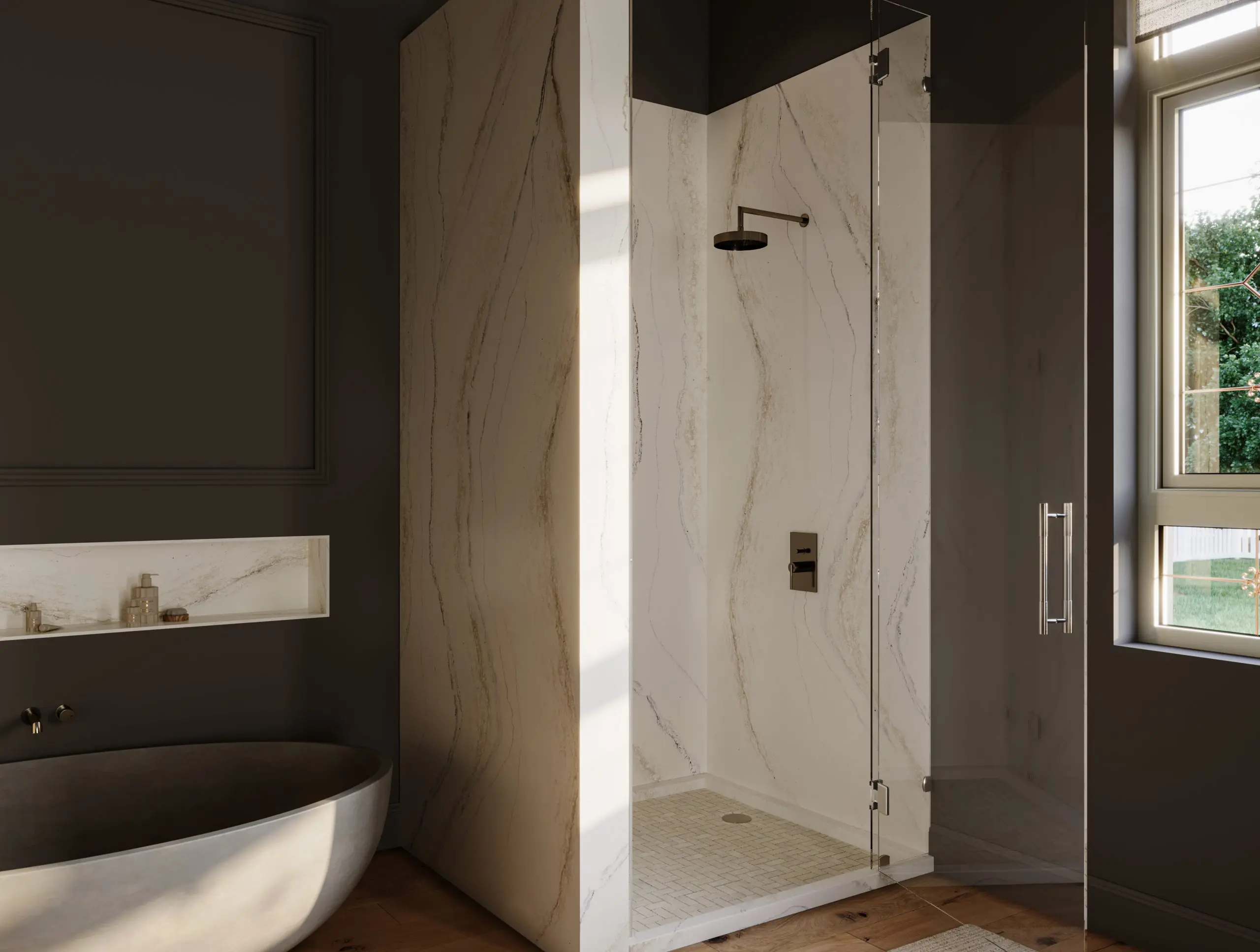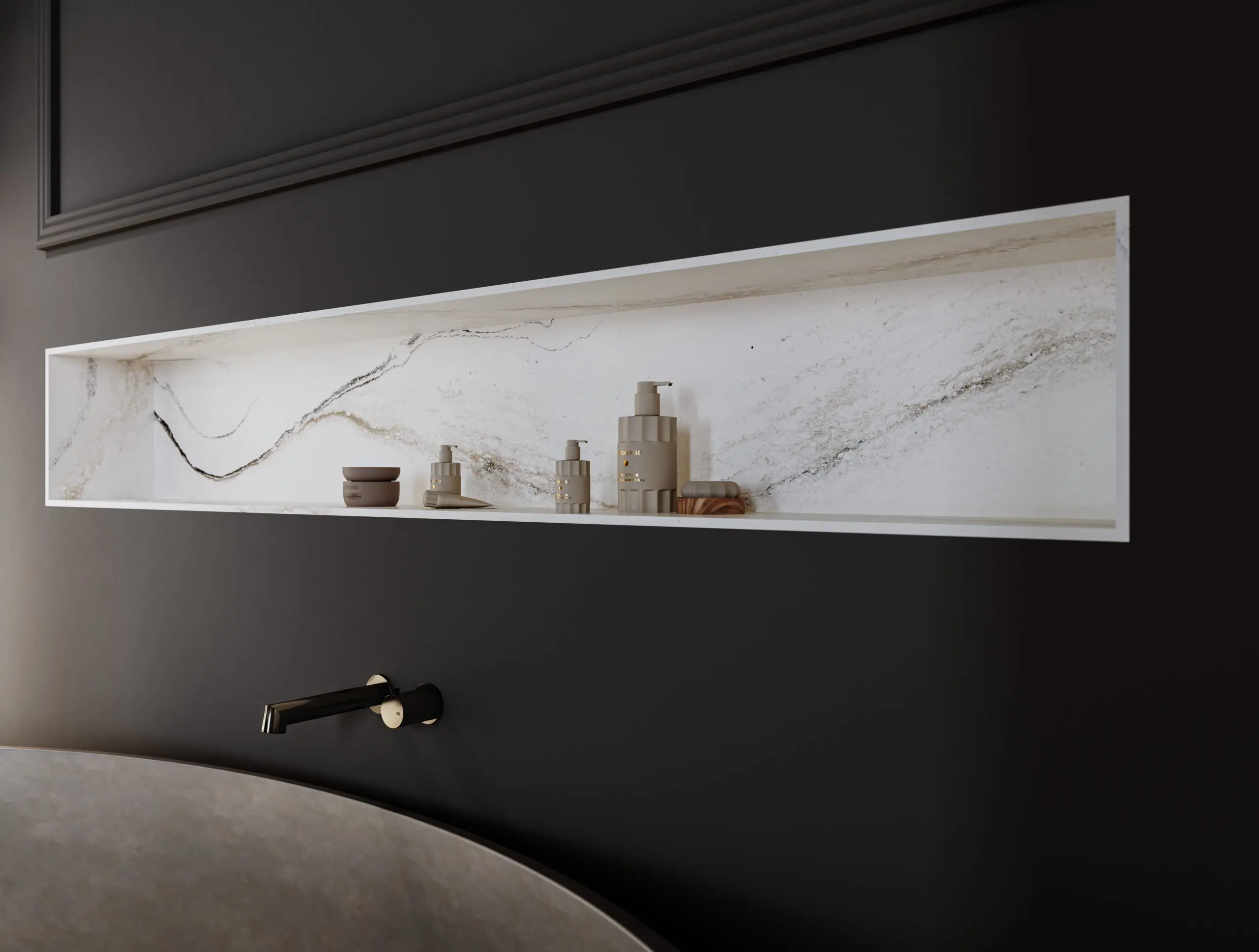 Not only do countertop material top vanity countertops, as well as complete shower walls, free standing tub platforms, as well as stunning accent walls. Not to mention toping your shower benches, shower niches, pony walls, and shower curbs.